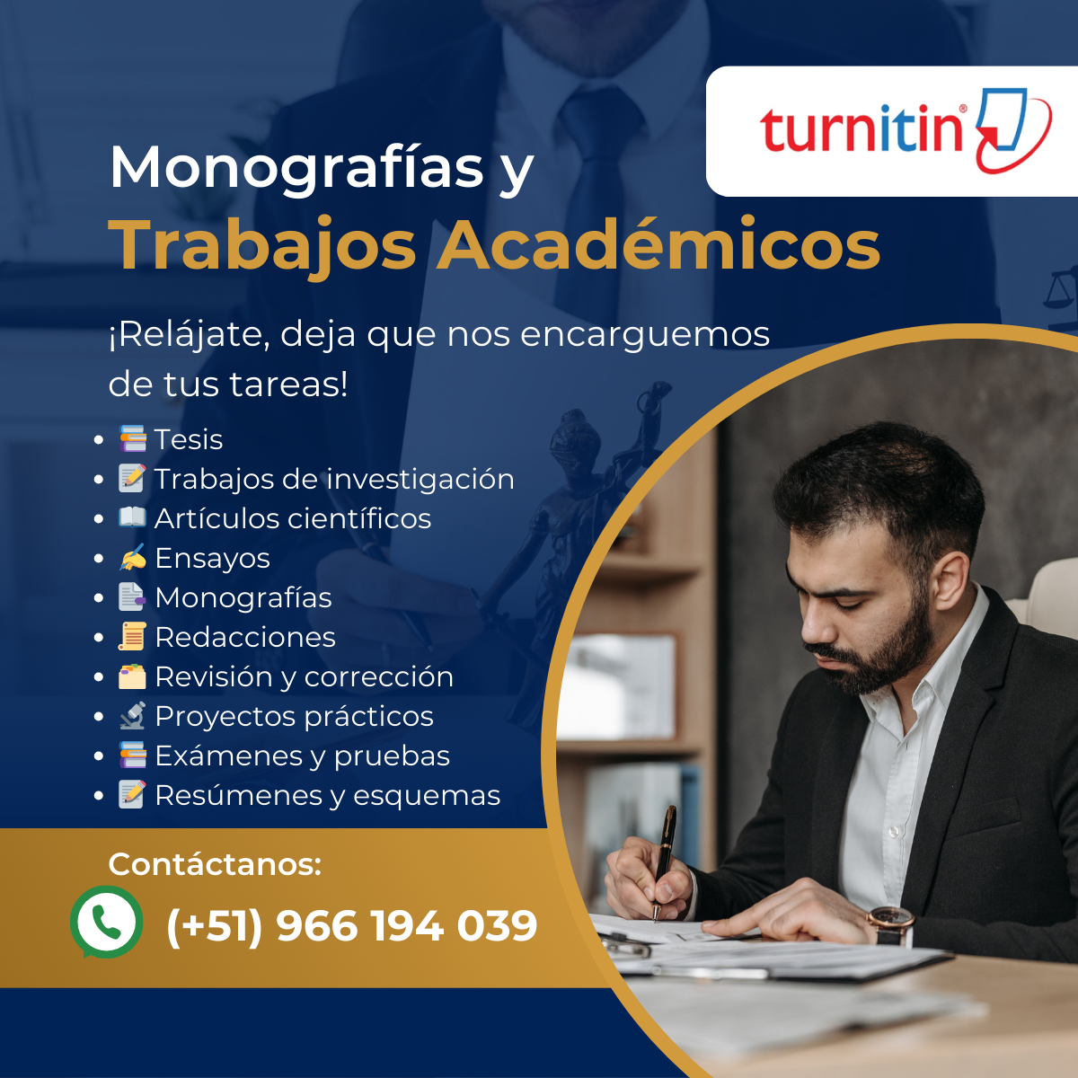 Corrección de estilo, gramática, y formato en todo tipo de documentos académicos, incluyendo la reducción del porcentaje de plagio con herramientas como Turnitin.