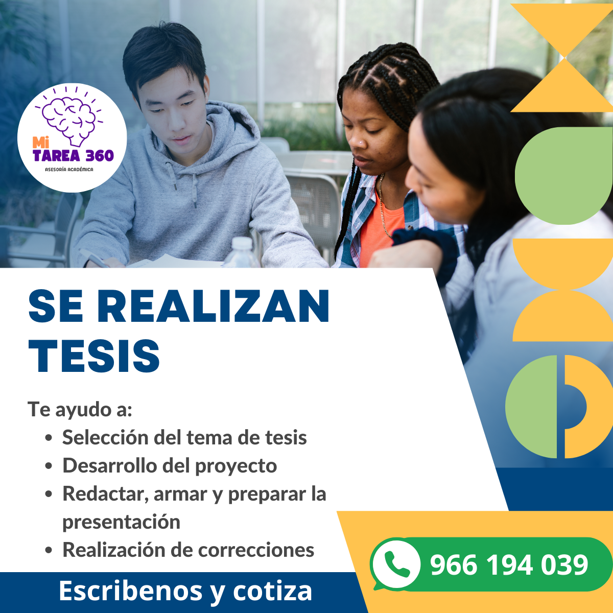 En MiTarea360, nos encargamos de tu éxito académico mientras tú disfrutas de tu tiempo libre. Calidad, originalidad y confidencialidad garantizadas en cada entrega. ¡Contáctanos hoy y deja tus tareas en manos de expertos!